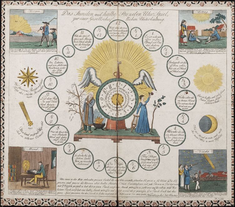 Das Stunden und halbe Stunden Uhr-Spel