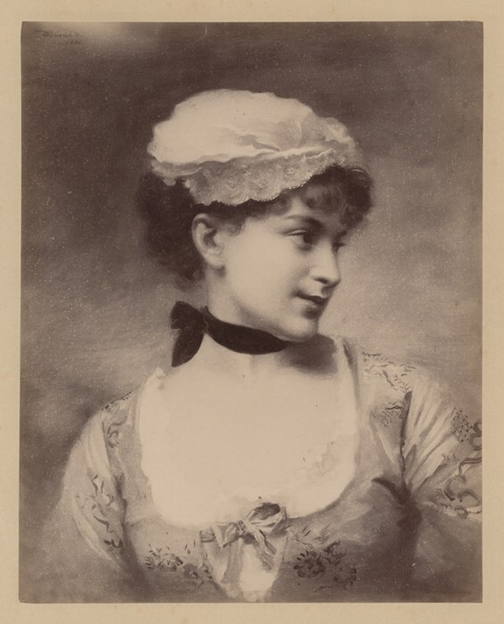 Schilderij van jonge vrouw, buste naar rechts