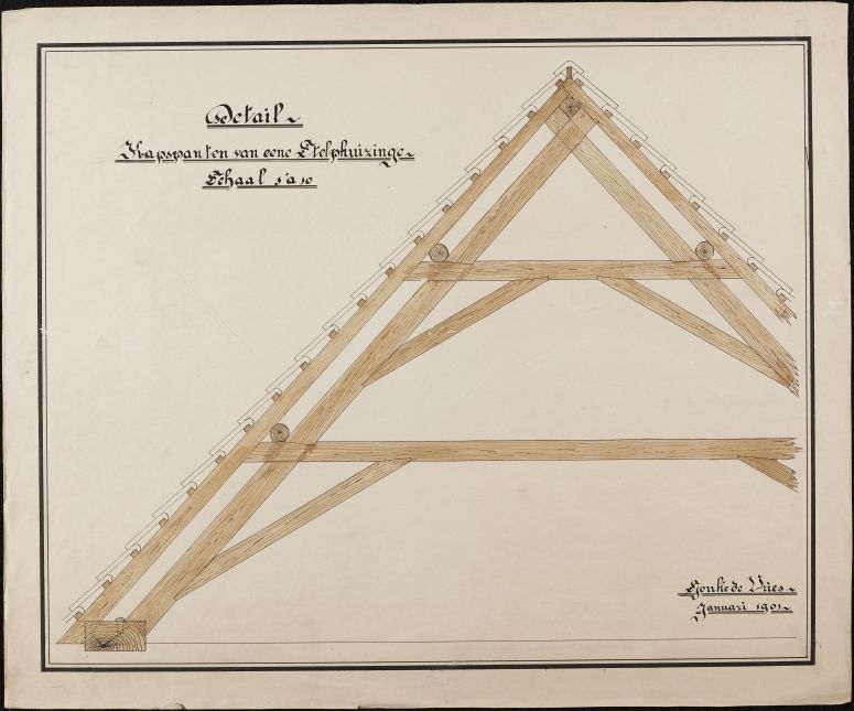 Technische tekening van de kapspanten van een stolphuis