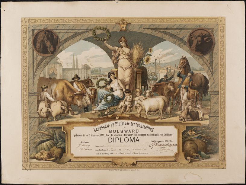 Diploma toegekend aan slager J. van der Weide op de Landbouw- en Pluimvee-Tentoonstelling te Bolsward in 1903