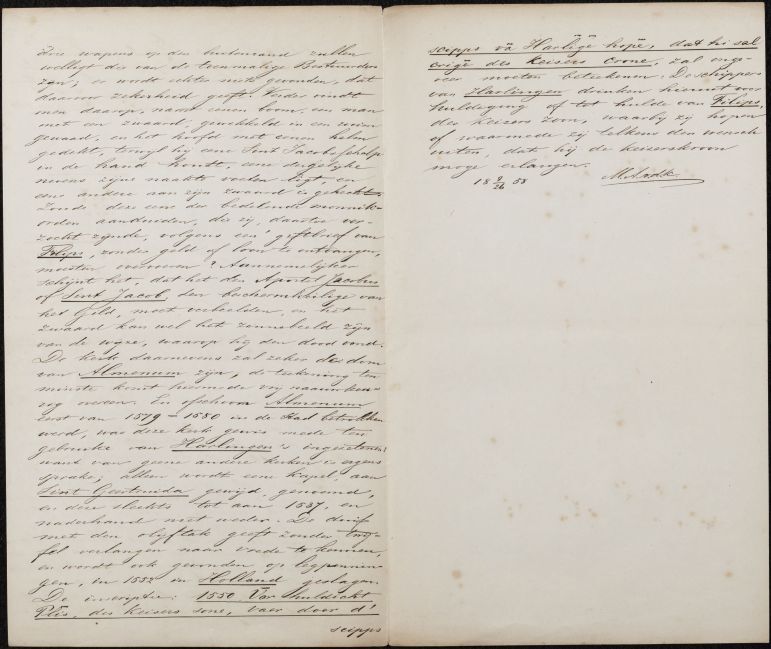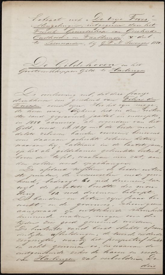 Handgeschreven extract over de drinkhoorn van het Grootschippersgilde van Harlingen