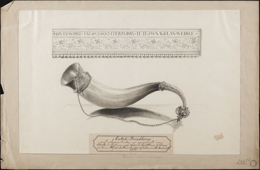 Drinkhoorn met zilveren beslag van Rints, dochter van Wopke Tallum en weduwe van Sjoerd Siebes Teetlum