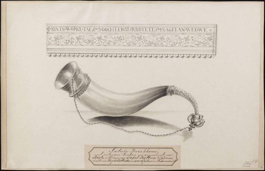 Drinkhoorn met zilveren beslag van Rints, dochter van Wopke Tallum en weduwe van Sjoerd Siebes Teetlum