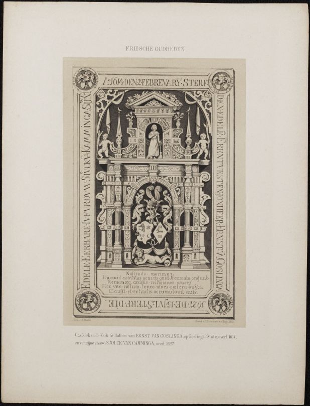 Losbladig exemplaar van het boek Friesche Oudheden (proefdruk?), met een stapel afbeeldingen
