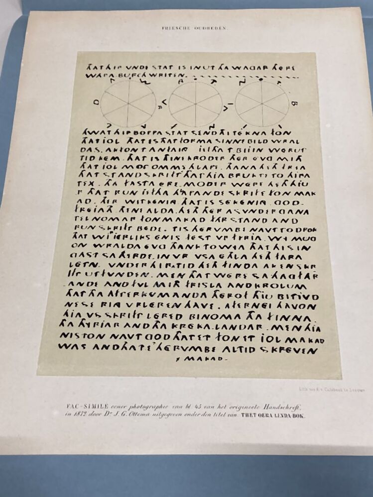 Losbladig exemplaar van het boek Friesche Oudheden (proefdruk?), met een stapel afbeeldingen