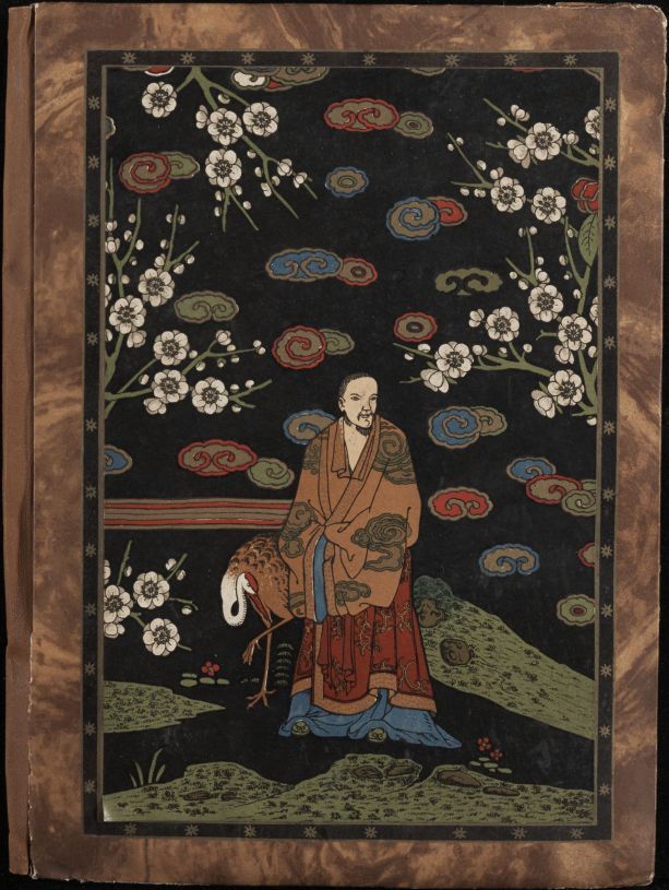 Leeg album in leren omslag met een Chinese voorstelling