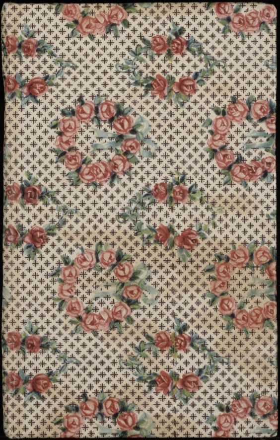 Aantekenboekje met blokje papier, in kaft versierd met rozenkransen