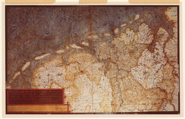 Foto van een kaart van Christiaan Sgrooten van het noorden van Nederland en Duitsland