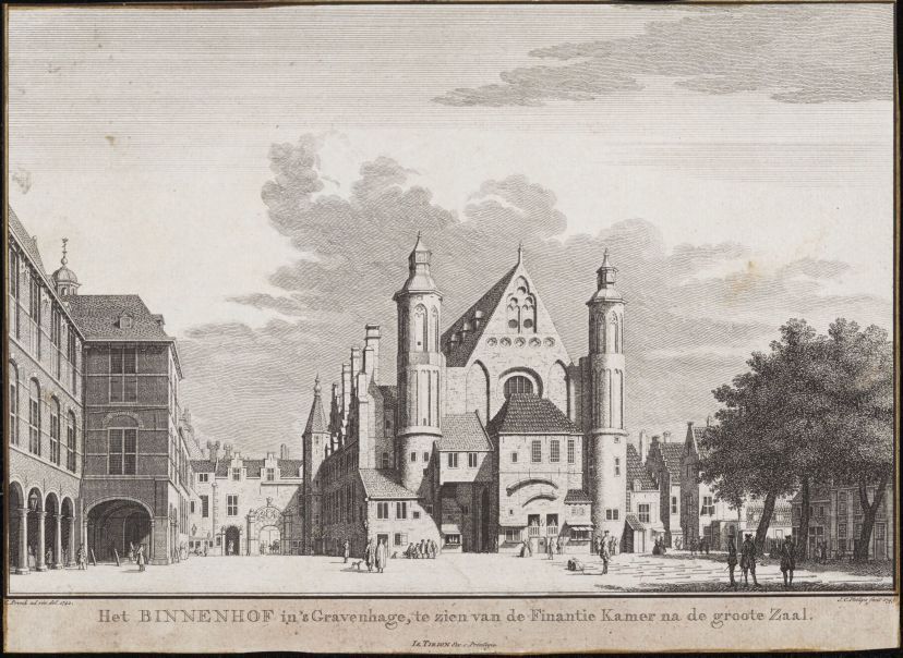 Map Zuid-Holland met 1 afbeelding van gebouwen te 's Gravenhage, stadhuis, Hof van Holland en binnen- en buitenhof