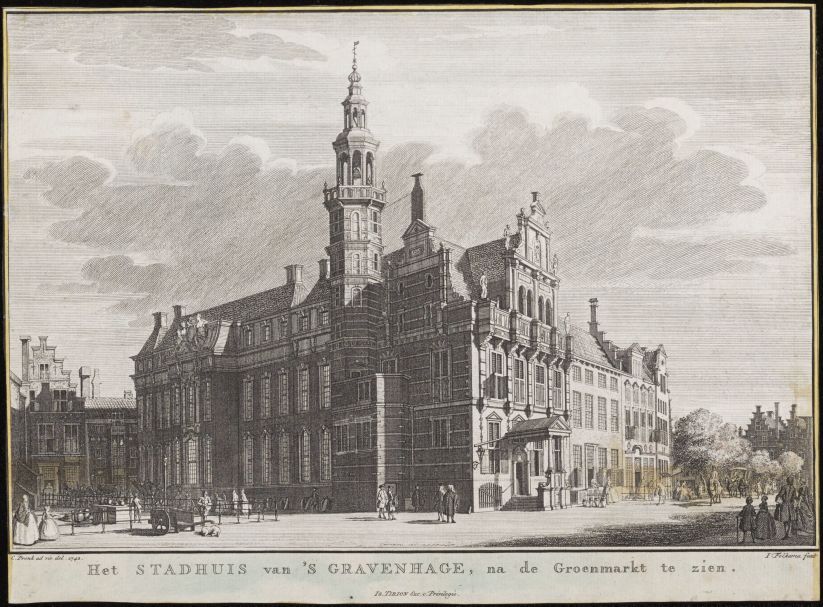 Map Zuid-Holland met 1 afbeelding van gebouwen te 's Gravenhage, stadhuis, Hof van Holland en binnen- en buitenhof