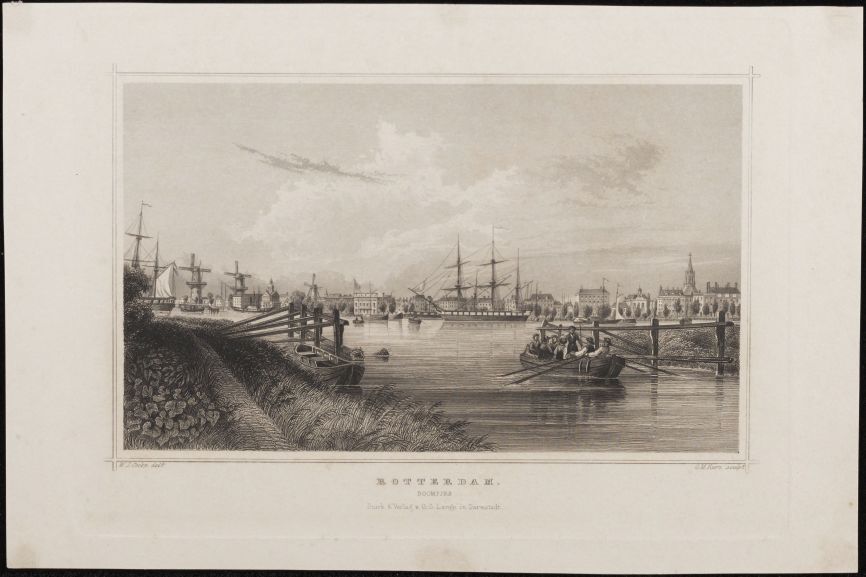 Map Zuid-Holland met 1 afbeelding van Rotterdam, poorten, stedelijke gebouwen, kerken enz.