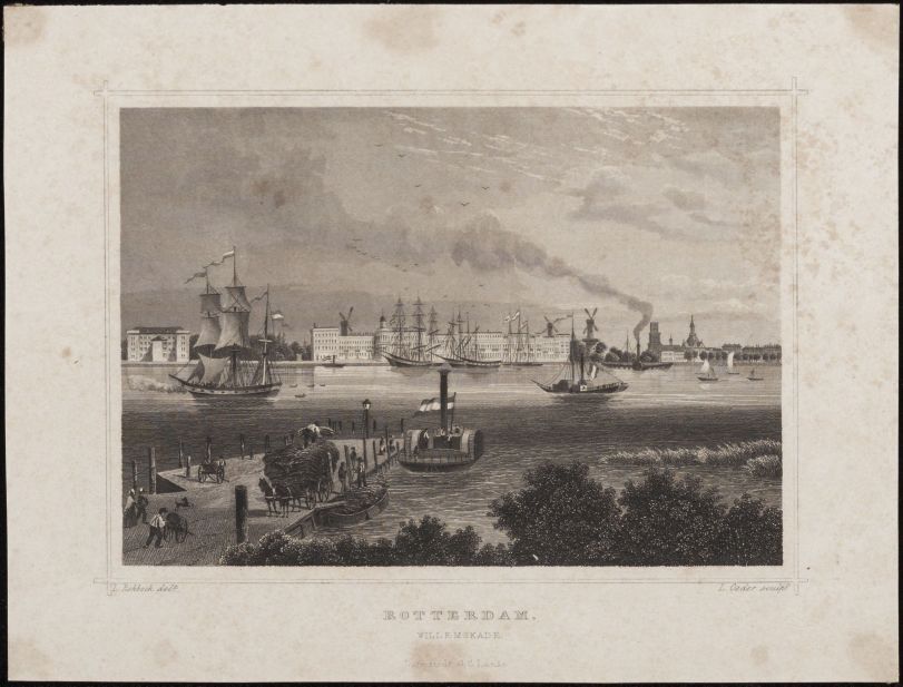 Map Zuid-Holland met 1 afbeelding van Rotterdam, poorten, stedelijke gebouwen, kerken enz.