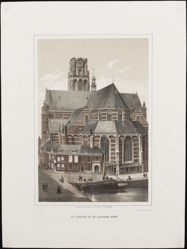 Map Zuid-Holland met 1 afbeelding van Rotterdam, poorten, stedelijke gebouwen, kerken enz.