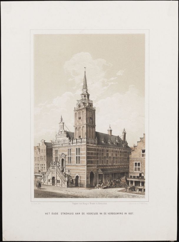 Map Zuid-Holland met 1 afbeelding van Rotterdam, poorten, stedelijke gebouwen, kerken enz.
