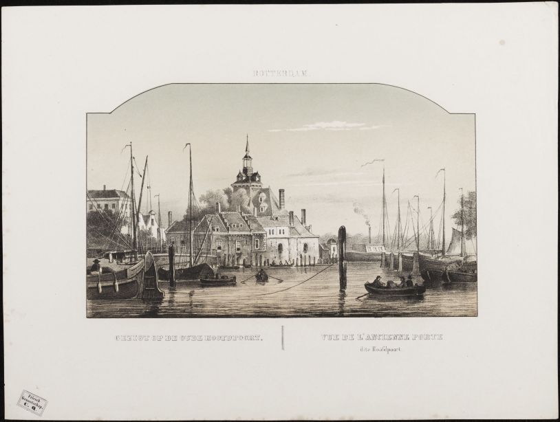Map Zuid-Holland met 1 afbeelding van Rotterdam, poorten, stedelijke gebouwen, kerken enz.