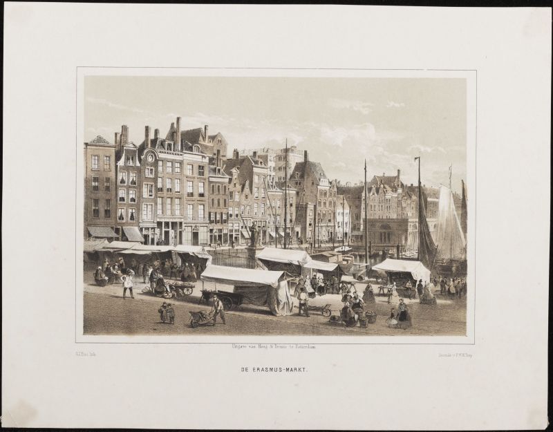 Map Zuid-Holland met 1 afbeelding van Rotterdam, poorten, stedelijke gebouwen, kerken enz.