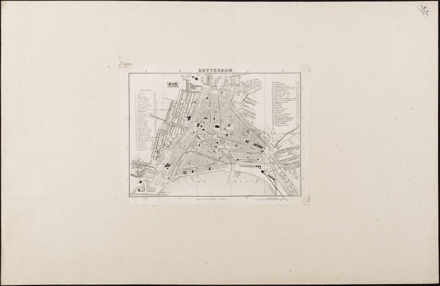 Map Zuid-Holland met 1 afbeelding van Rotterdam, plattegrond met legenda's en gezichten om, op en in de stad