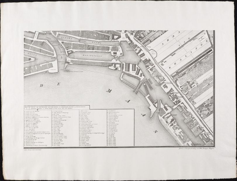 Map Zuid-Holland met 1 afbeelding van Rotterdam, plattegrond met legenda's en gezichten om, op en in de stad
