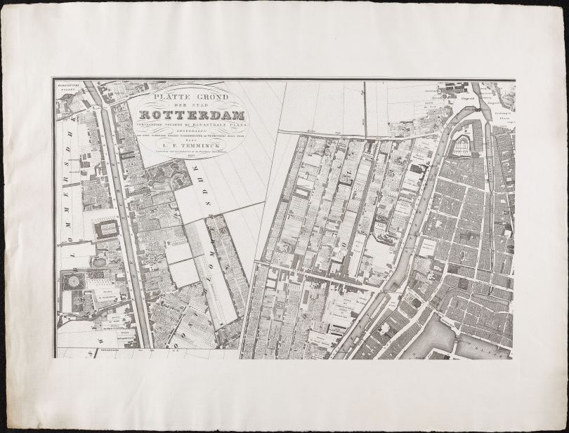 Map Zuid-Holland met 1 afbeelding van Rotterdam, plattegrond met legenda's en gezichten om, op en in de stad