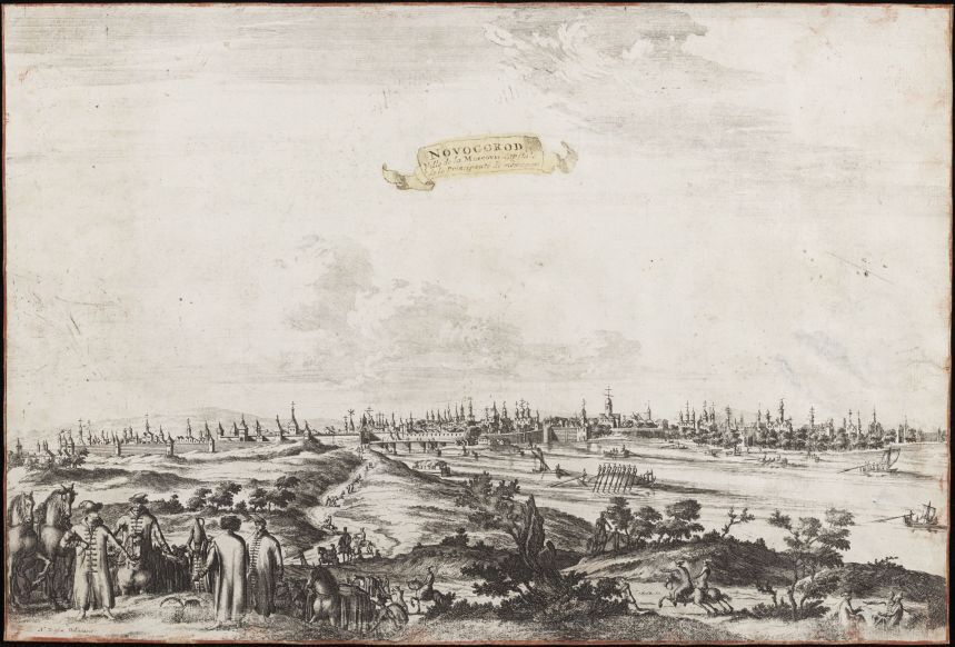 Map Rusland met 1 gezicht op en in steden, gebouwen, historieplaten, gewoonten enz. van Rusland