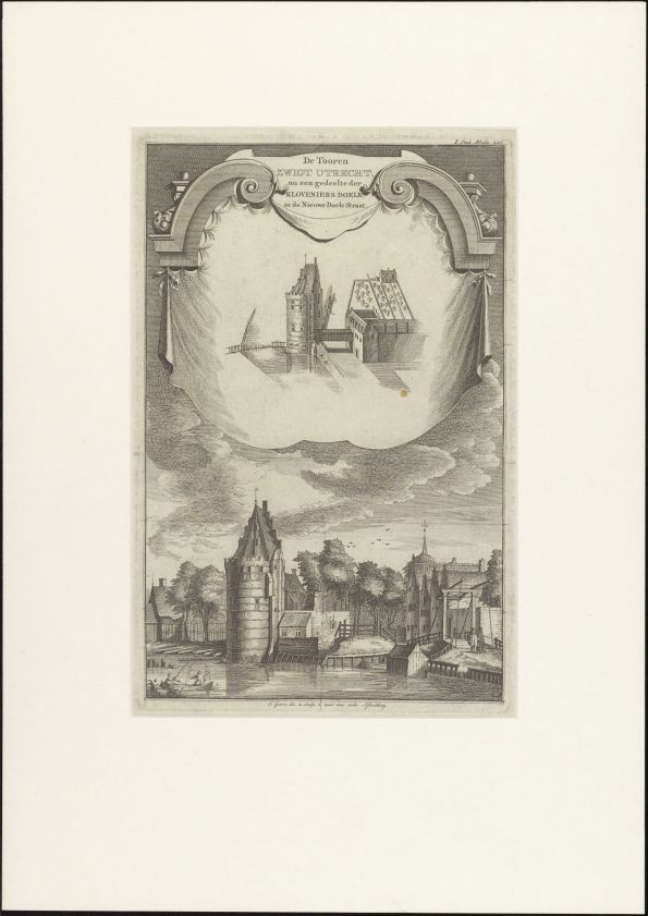 De Tooren / Zwigt Utrecht / nu een gedeelte der / Kloveniers Doele / in de Nieuwe Doele Straat