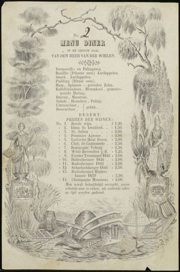 Menukaartje Van den heer van der Wielen