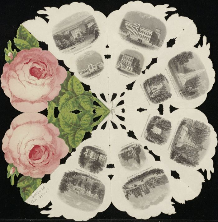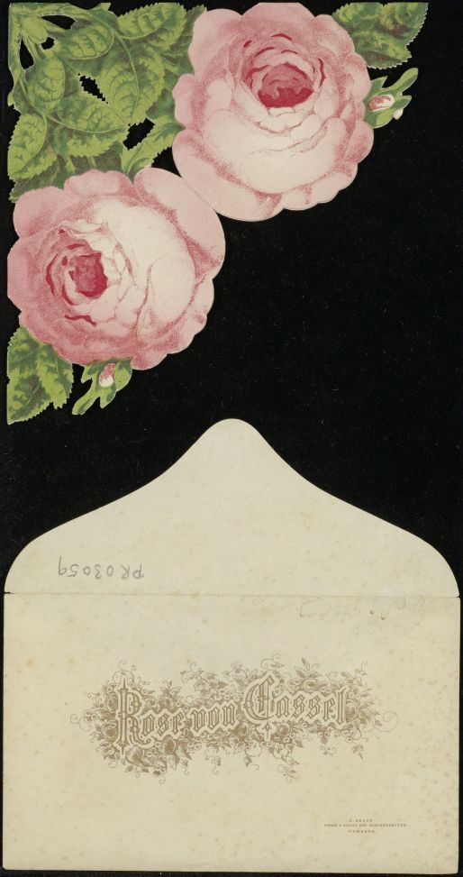 Souvenir kaart in de vorm van een roos van plekken en steden in Duitsland, in envelop