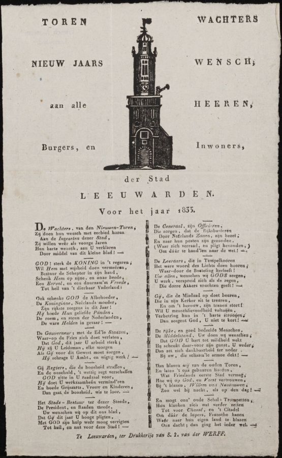 Nieuwjaarswens van de torenwachter van Leeuwarden voor het jaar 1833