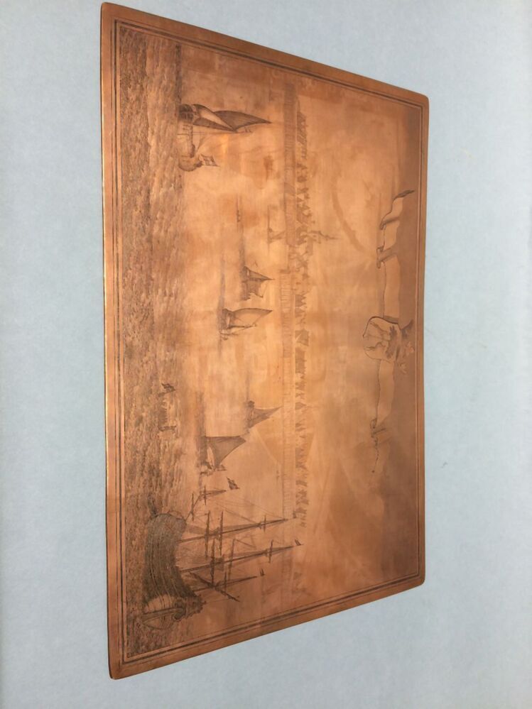 Koperplaat werd vanaf de 17e eeuw als metalen ondergrond voor olieverfschilderijen gebruikt, met name in Noord-Europa. (Conservation Dictionary) https://data.cultureelerfgoed.nl/term/id/cht/d14b2349-9f7e-4f8c-9505-481830d64470
