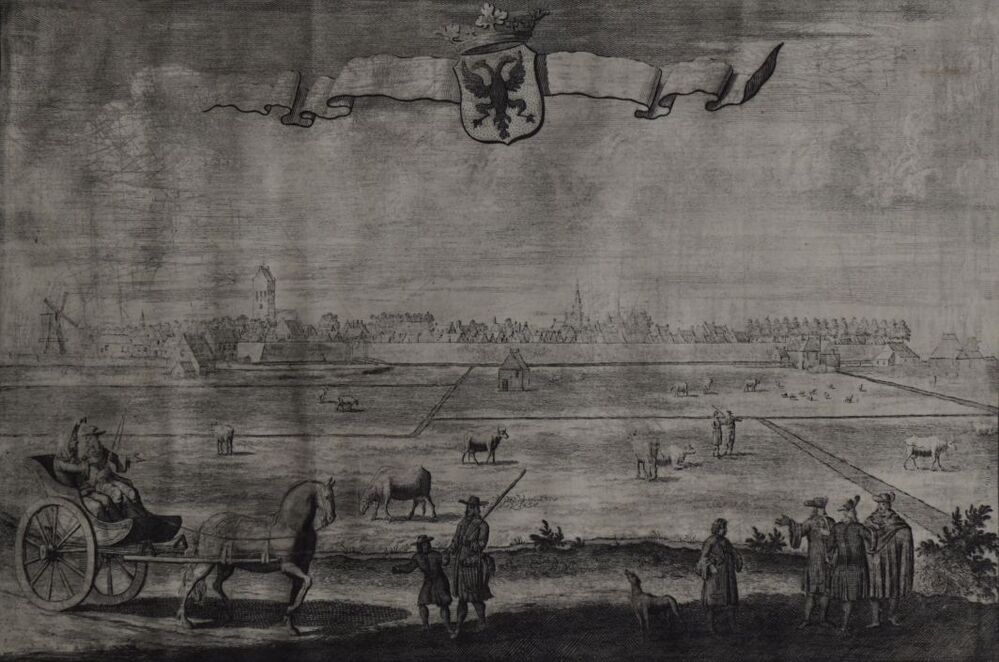 Afdruk van koperplaat met gezicht op Bolsward, onderdeel van koperplaat met twee moderne afdrukken