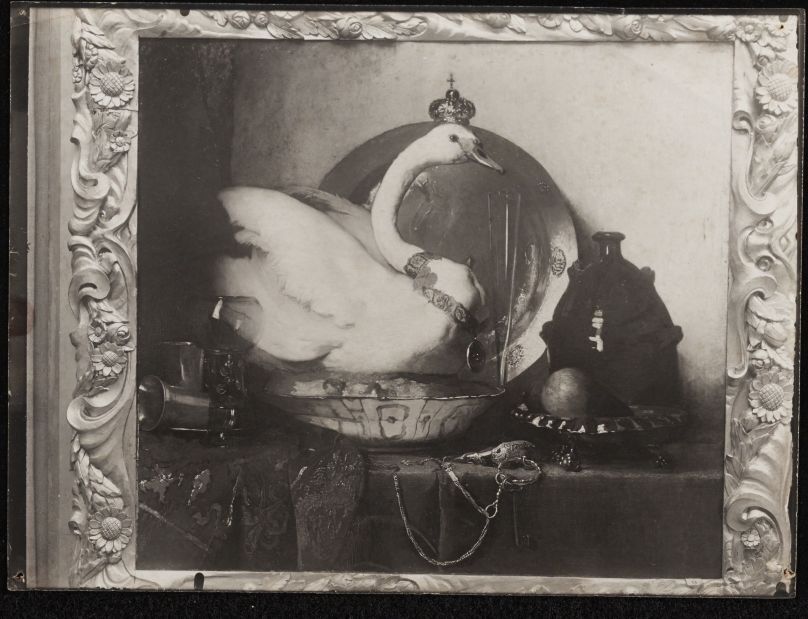 Stilleven met gekroonde zwaan, naar een schilderij van Christoffel Bisschop