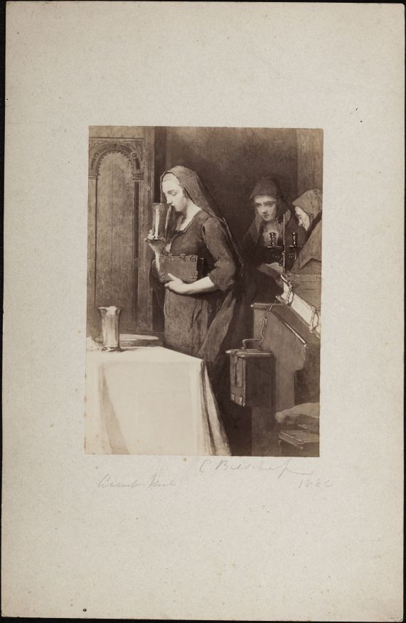 Vrouw drinkend uit avondmaalsbeker, naar een schilderij van Christoffel Bisschop