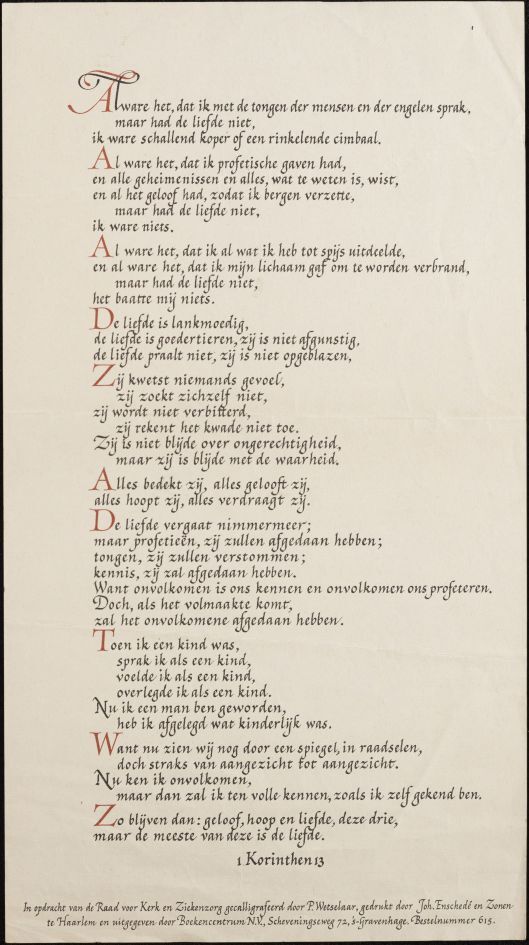 Tekst uit 1 Korinthe 13