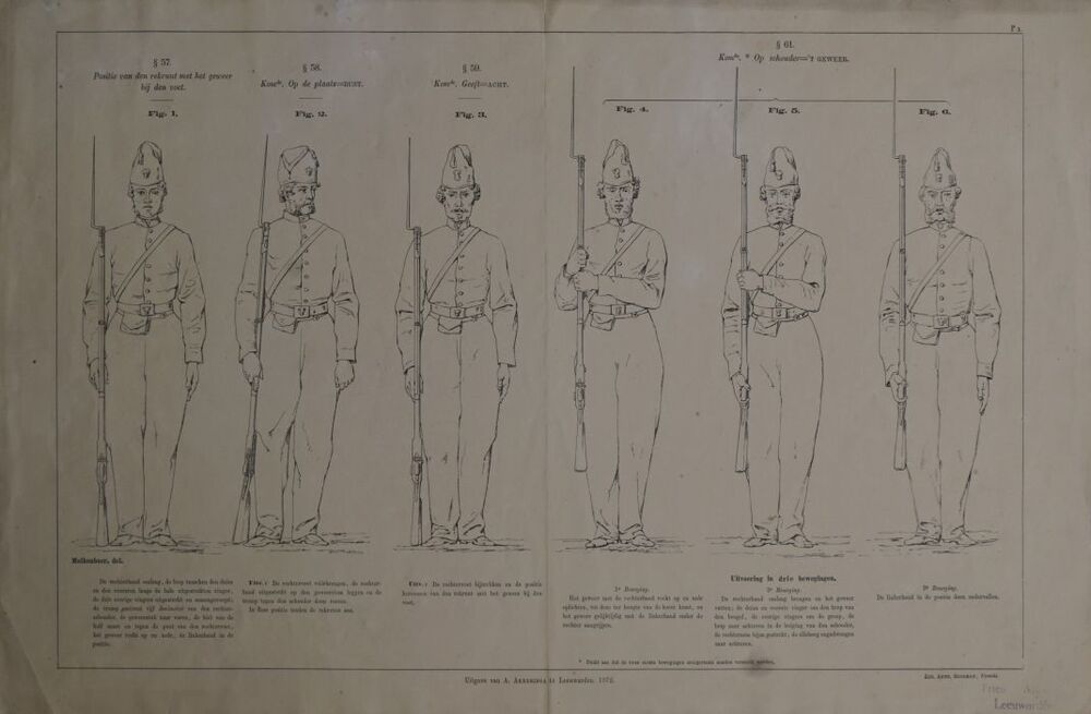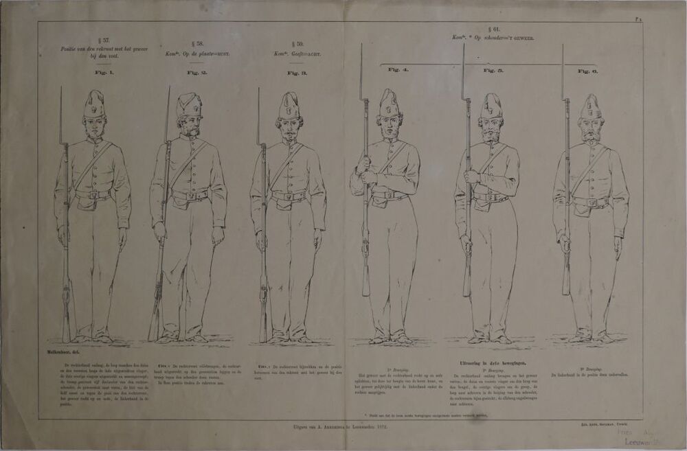 Blad met 6 posities van de rekruut met geweer