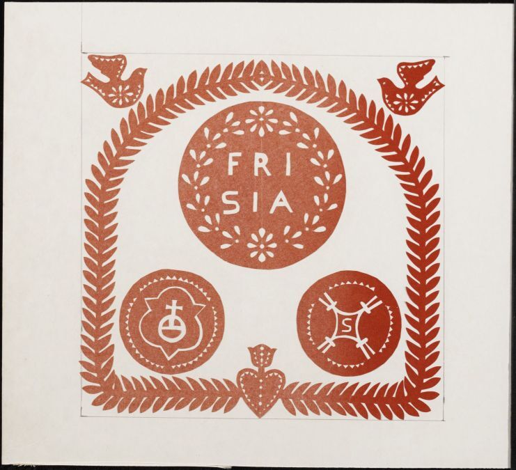 2 knipsels, een met de tekst Frisia en de ander met schedel en andere botten
