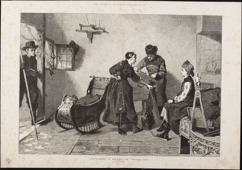 Afdruk van een met drukinkt ingerolde zijde van een blok langshout waarin een voorstelling is gestoken met een guts. De delen die wit moeten blijven zijn weggestoken. De houtsneden werden naderhand wel met de hand ingekleurd. https://data.cultureelerfgoed.nl/term/id/cht/740112f6-a8e4-48da-8b02-9e4796669cde