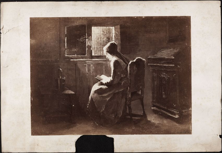 Vrouw lezend bij het licht van het raam