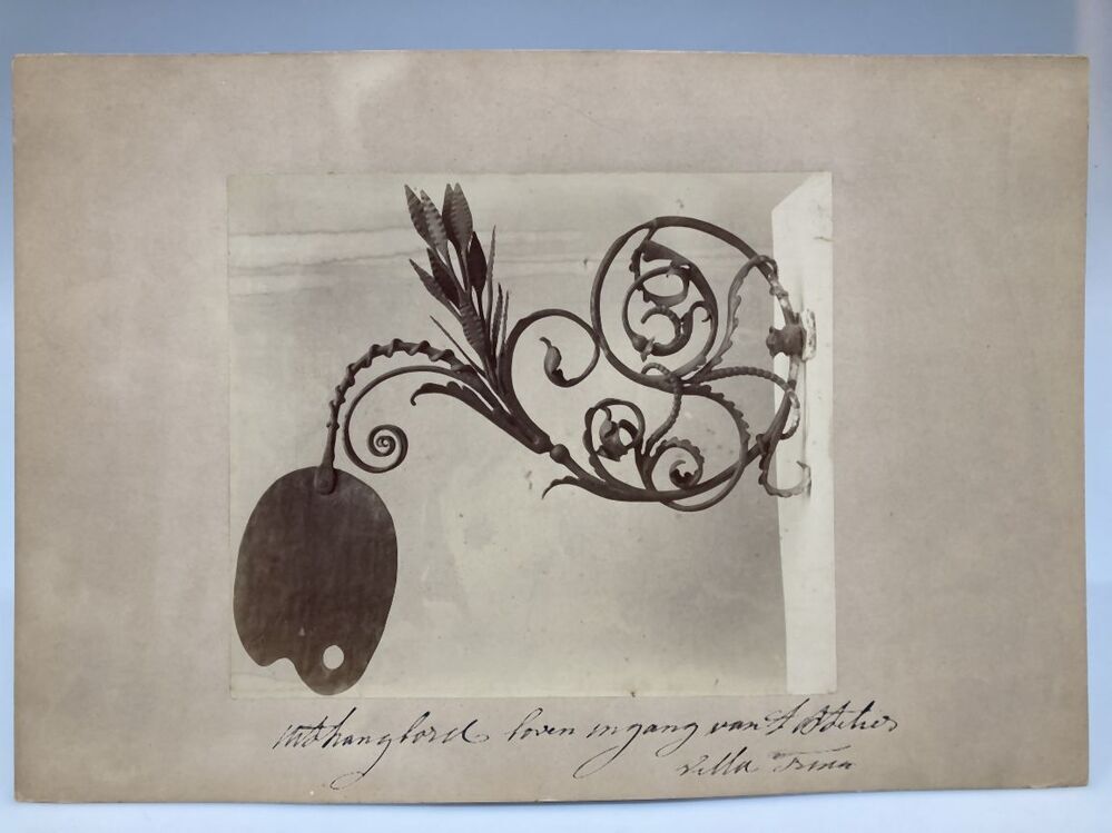 Uithangbord boven de ingang van het atelier van villa Frisia te 's Gravenhage