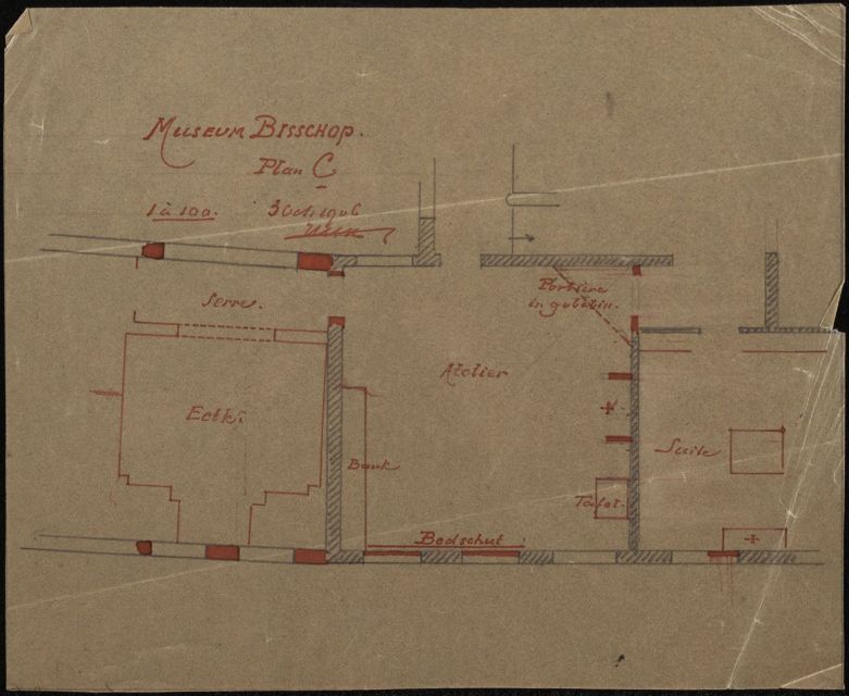 Voorstelling in lijnen van een architectonisch object langs geometrische weg, die niet een indruk weergeeft, zoals het gebouw door het menselijk gezicht gezien kan worden, maar de abstracte driedimensionale gedaante van het object, verkregen door stelselmatige berekening en opmeting. De weergave geschiedt op schaal en meestal in orthografische projectie. Voor de aanschouwelijkheid worden er soms perspectivische voorstellingen bijgevoegd. Een stel architectuurtekeningen bestaat gewoonlijk uit plattegrond(en) of horizontale doorsnede(n), gevelopstanden, lengte- en dwarsdoorsneden, vaak ook details. Zoals hiervoor werd aangeduid, is de architectuurtekening:–ontwerp voor een voorgenomen bouwwerk of bouwdeel, ev. met varianten. Voor de uitvoering zijn nog werktekeningen nodig. In het eerste stadium kan een ontwerp schetsmatig, algemeen oriënterend en suggestief zijn. In alle perioden sinds de vroege M.e. zijn ontwerptekeningen gemaakt. Ook symbolische ontwerpen, zoals het Pantheon der Mensheid van Berlage uit 1915, kan men hiertoe rekenen.–opmeting van een bestaand object, ter herinnering, als voorbeeld, met het oog op herstel, ev. een reconstructie, b.v. het schetsboek van Villard de Honnecourt (c. 1235), de talrijke restauratie-ontwerpen van architecten in XIX-XX en de sinds de renaissance geliefde reconstructie van antieke bouwwerken. Het oudst bekende document op dit gebied is de plattegrond voor de abdij van St.-Gallen in Zwitserland, dat in het archief van deze abdij bewaard is. Het is een ideaal schema dat iemand uit de hofkring van Karel de Grote omstreeks 820 aan abt Gozbert toezond. Het is slechts gedeeltelijk verwezenlijkt, maar zeer belangrijk voor de kennis van de vroeg-m.e. aanleg van kloosters. De opstand van een aantal gebouwen is in het horizontale vlak neergeslagen, zoals ook op een schetsmatige plattegrond van c. 1150 van de abdij van Canterbury.Meer recht op de naam architectuurtekening heeft een aantal tekeningen uit de gotische tijd, waarvan wij aanstippen verschillende tekeningen in het Livre de portraicture van Villard de Honnecourt. Hier worden op geometrische basis (driehoeken, rechthoeken, diagonalen) onderdelen aangegeven betreffende de kathedraal van Reims en het maaswerk daarvan, roosvenster te Lausanne, toren van Laon, plattegronden van Meaux en Cambrai (Kamerijk). Verder bleven vele tekeningen uit XIII-XV bewaard, o.a. te Reims, Straatsburg, Keulen, Clermont, Limoges, St.-Quentin, Milaan, Wenen, Barcelona. Interessant zijn een ontwerp uit c. 1230 voor de O.L.V.kerk te Trier op een steen in een traptoren en M. Röritzers gedrukte boekje uit 1486 over ‘der Fialen Gerechtigkeit’. Ook in de Nederlanden bleven talrijke tekeningen bewaard, uit de late M.e. (torens te Breda, Mechelen, Zierikzee en Mons, stadhuis te Gent) en vele uit latere perioden. In het kasteel Cannenburch te Vaassen (Gld.) is een in de pleisterlaag ingekraste tekening op ware grootte aangetroffen van een gevelbeëindiging. Met de uitvinding van de boekdrukkunst en vooral na die van het centrale perspectief en de theoretische grondslagen van de projectie verschijnen de ontwerpen en reproducties in talloze werken over architectuur ( ordeboek, architectuurtraktaat).Kenmerkend voor de architectuur uit de Noord-Europese baroktijd is een eigenaardige behandeling, waarbij uitspringende architectuurdelen wit worden gelaten. Eind XVIII is de toen geliefde scenografie (verkort weergegeven tekeningen, ook voor toneeldoeken) van invloed, getuige de ‘vedute’ (1745-’75) van Piranesi c.s.. (Haslinghuis) https://data.cultureelerfgoed.nl/term/id/cht/25df5f68-005c-45b0-afba-d6f13b9b41e1