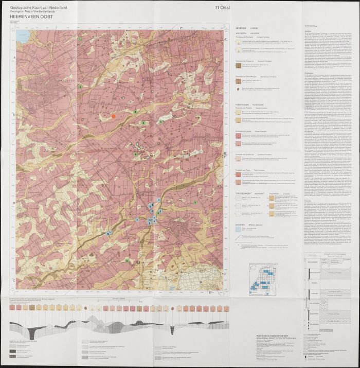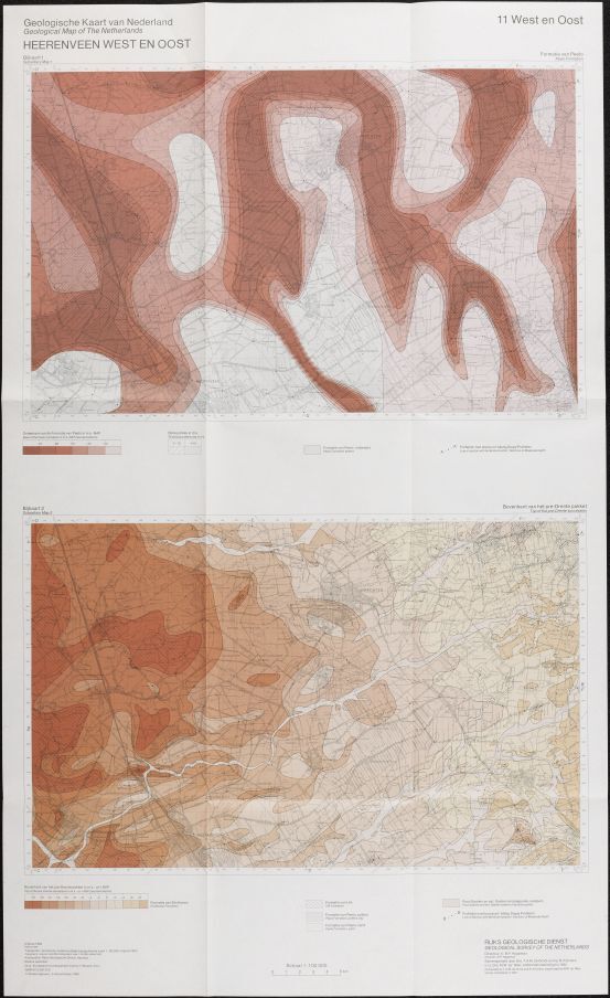 7 geologische kaarten van Heerenveen, 1:100.000 in een doorzichtig mapje
