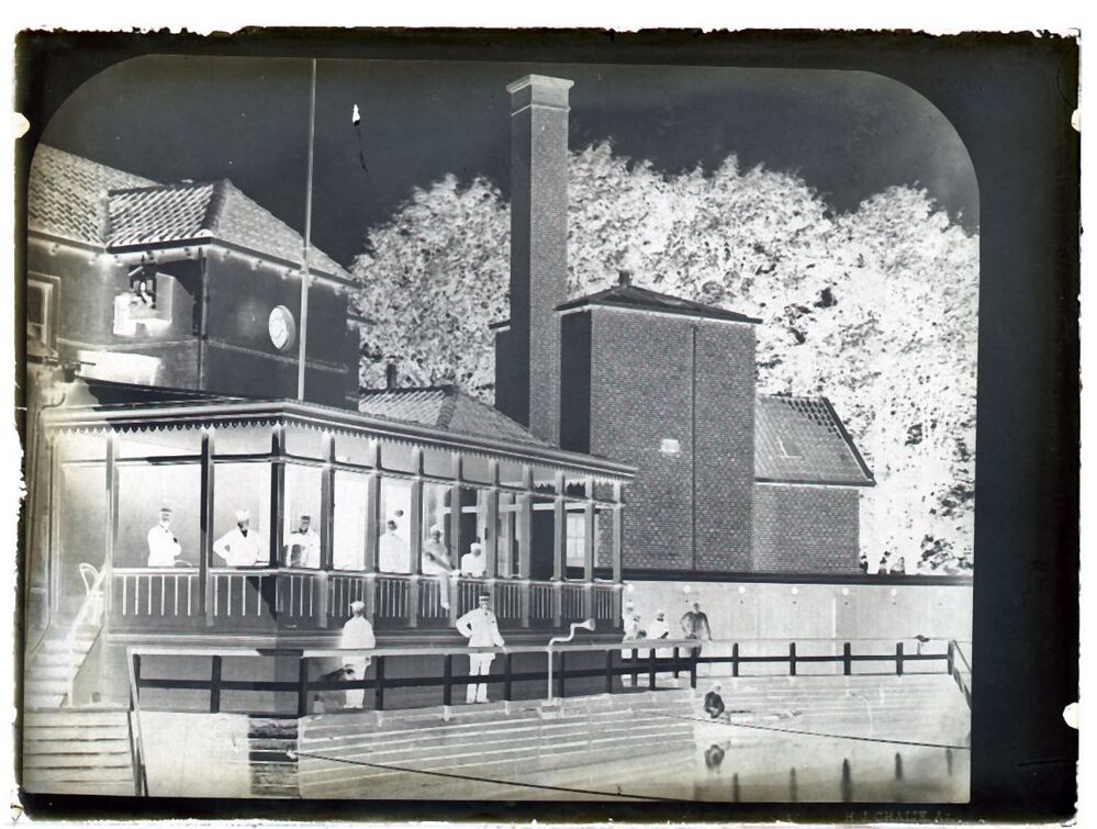 Glasnegatief, oorspronkelijk deel van doos met 21 glasnegatieven (klein formaat) van Leeuwarden, Hindeloopen, Sneek en Workum
