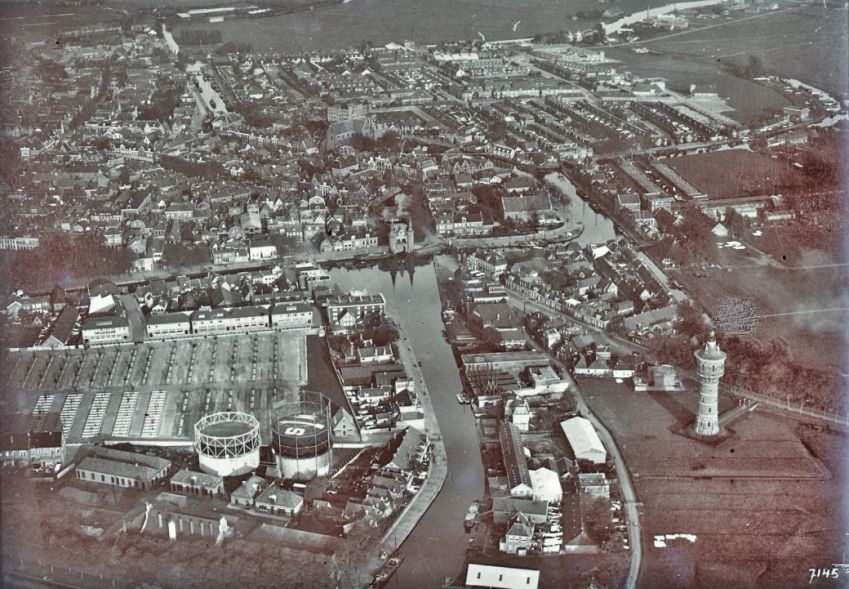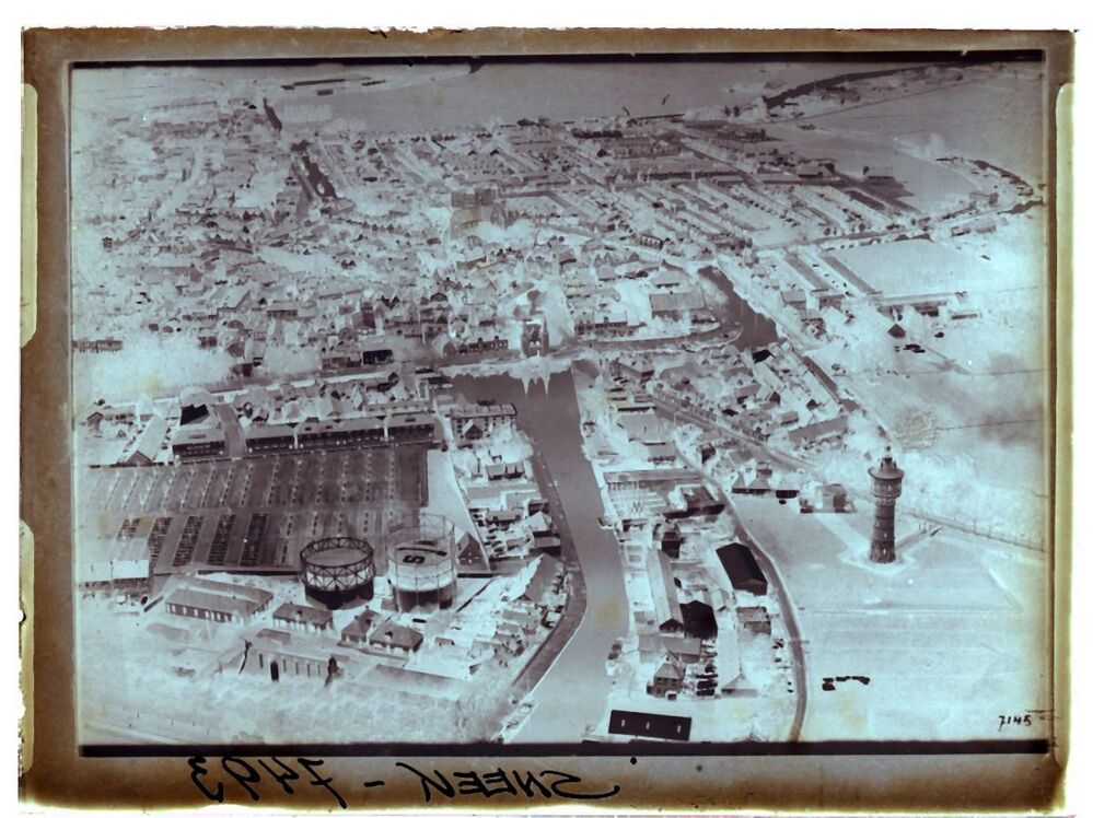 Glasnegatief, oorspronkelijk deel van doos met 21 glasnegatieven (klein formaat) van Leeuwarden, Hindeloopen, Sneek en Workum