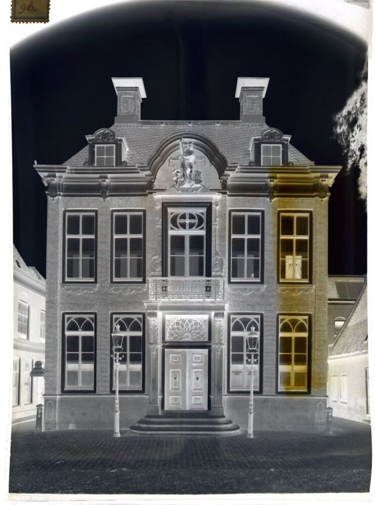 Doos met oorspronkelijk 21 glasnegatieven van gezichten te Hindeloopen, Sneek en Workum