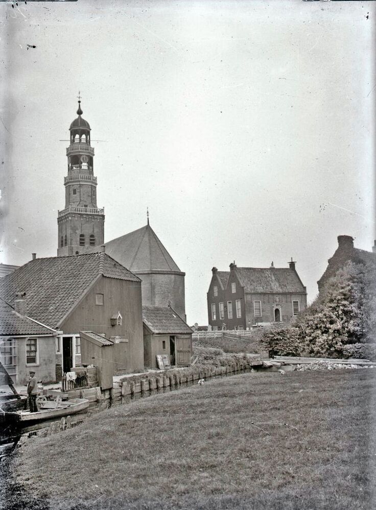 Doos met oorspronkelijk 21 glasnegatieven van gezichten te Hindeloopen, Sneek en Workum