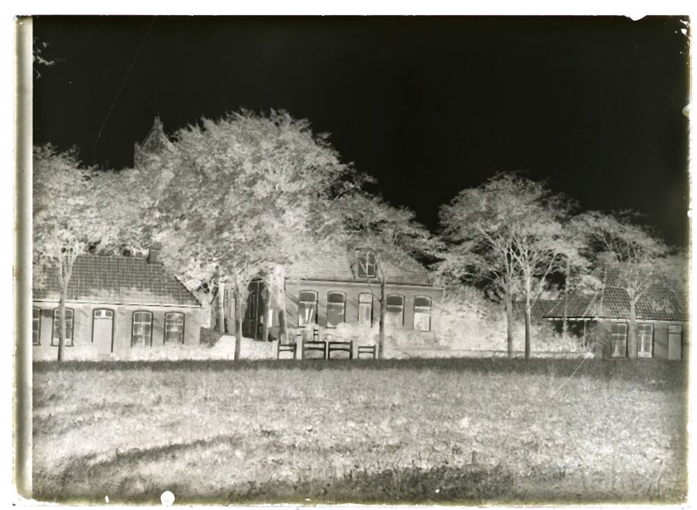 Doos met 21 glasnegatieven van gezichten op dorpen in Friesland F t/m G