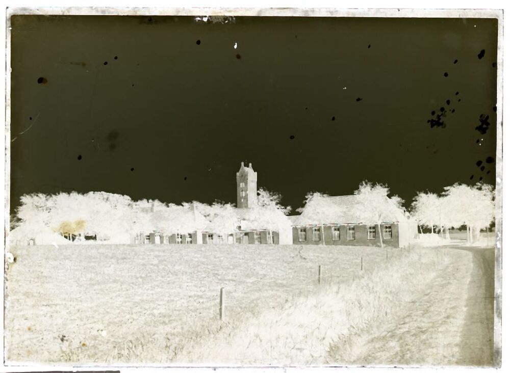 Doos met 21 glasnegatieven van gezichten op dorpen in Friesland F t/m G