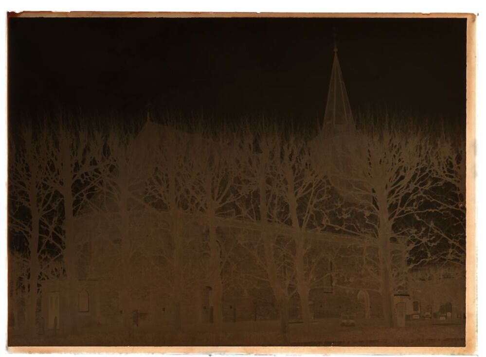 Doos met 23 glasnegatieven van gezichten op dorpen in Friesland K t/m M