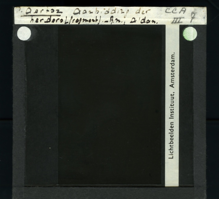 Doos met 5 glasnegatieven van diverse onderwerpen en 6 glasdia's van reprodukties van schilderijen