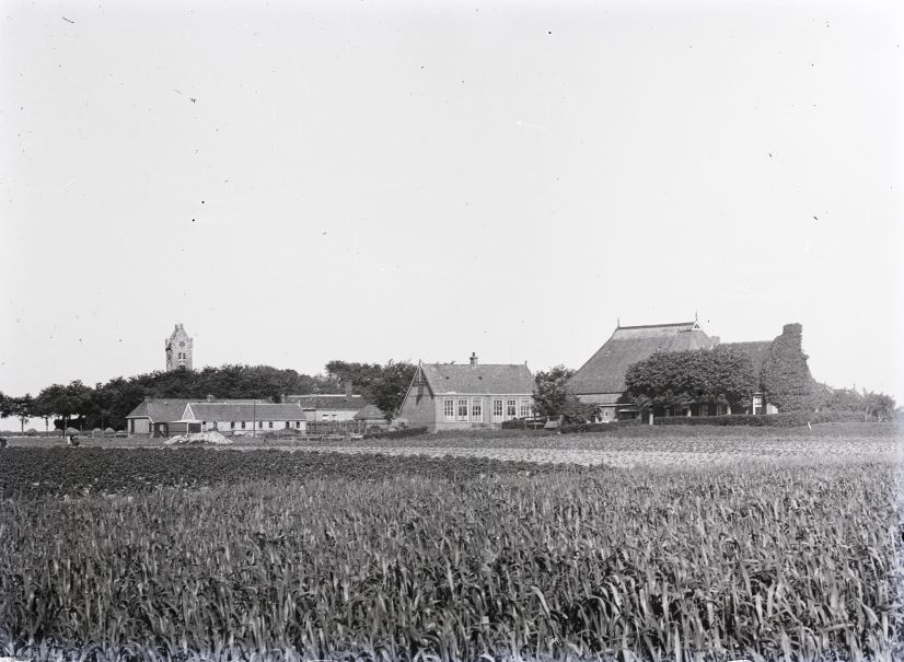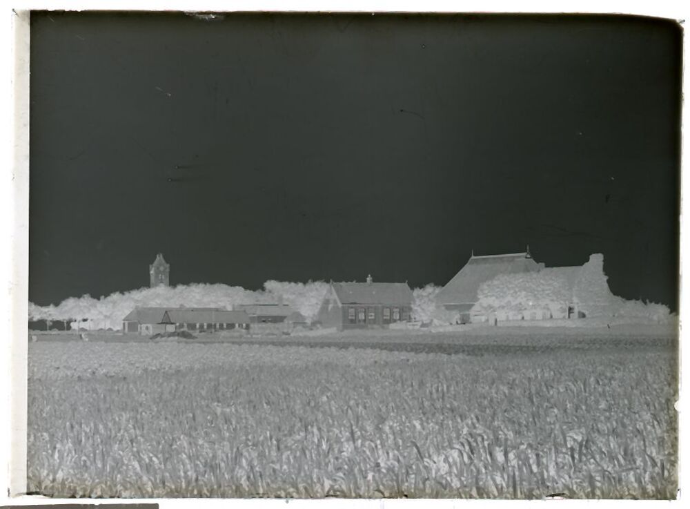 Doos met 6 glasnegatieven van Firdgum en van een schilderij van het stadhuis van Sneek