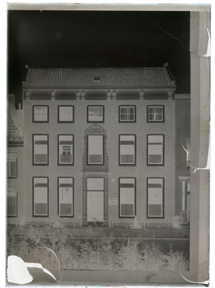 Doos met 24 glasnegatieven van de Tweebaksmarkt en Provinciehuis en diverse gezichten te Leeuwarden en van een Rooms-Katholieke kerkgezelschap
